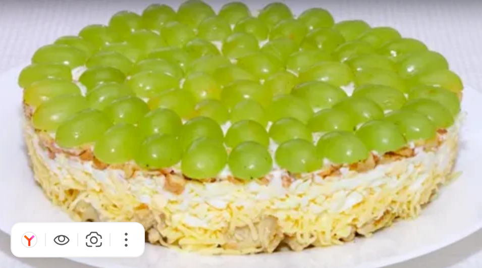 Ингредиенты (на 6–8 порций): Приготовление «в баночку» (быстрый микс-салат): Классическое слоёное оформление «Тиффани» кольцом: Мелкие хитрости: Готовое блюдо получается одновременно сытным (мясо+сыр+яйцо), свежим (виноград) и пикантным (грибы и орехи), а контрастные цвета делают салат «Тиффани» центром новогоднего стола. Enjoy!