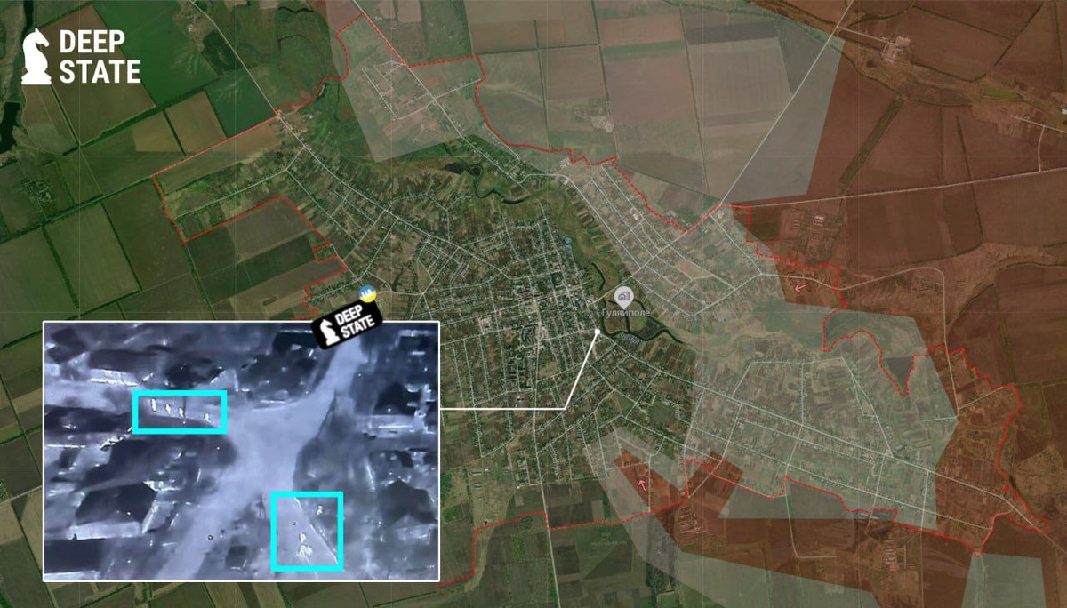 DeepState. Как заявляется противник, в бригаде не знают обстановку у соседних батальонов, а ситуация доходит до попыток наведения артиллерии на собственную пехоту, принятую за российских штурмовиков. Кроме того, командиры рассылают личному составу видео с «российскими фейками». «Из-за саботажа некоторых офицеров 102 ОБр ТрО существует риск потери Гуляйполя - бойцов подговаривают на самовольное оставление позиций, а активистам присылают российские фейки. На фотографии наши бойцы из 102 ОБр ТрО, которых изначально приняли за вражеских штурмовиков и навели на них артиллерию, но благодаря тому, что вовремя удалось проверить принадлежность, то лишь чудом избежали дружественного огня. Как стало нам известно, в 102 ОБр ТрО есть группа офицеров, которые поощряют самовольное оставление позиций. Параллельно с этим, в бригаде не знают обстановку в соседних батальонах, думая что соседи стоят, а они уже за пределами области. Командиры рот из 102 ОБр ТрО собственным примером пытаются удержать лю