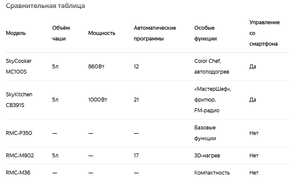 Хотите готовить вкусно и без лишних хлопот? Мультиварки Redmond помогут сэкономить время и силы на кухне, предлагая широкий набор программ и удобные функции. Как не растеряться в многообразии моделей и выбрать ту, что идеально подойдёт именно вам? В этой статье сравним пять популярных мультиварок: Redmond SkyCooker MC100S, SkyKitchen CB391S, RMC‑P350, RMC‑M902 и RMC‑M36. Разберём их ключевые особенности, чтобы вы смогли принять взвешенное решение. Redmond SkyCooker MC100S
