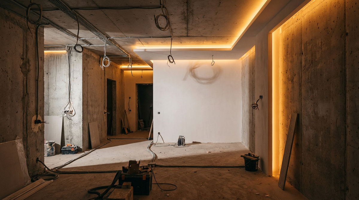 Есть момент на черновом этапе когда кажется что все под контролем. Стены стоят трассы выведены рабочие уверенно кивают. Именно в этот момент чаще всего и закладывается будущая переделка. Не потому что кто то плохо работает а потому что решения принимаются по очереди а не как единая система. Снаружи все выглядит спокойно но внутри уже начинается конфликт. Мы часто видим как сначала делают электрику потом вспоминают про умный дом потом начинают думать где будут сценарии свет шторы климат. Провода уже в бетоне закладных нет места под оборудование выбраны случайно. В итоге начинается подгонка на ходу и каждый новый шаг делает предыдущий менее логичным. Это не ошибка одного человека это ошибка порядка. Когда нас подключают на этом этапе приходится выбирать между плохим и еще хуже. Или вскрывать готовое или сразу признавать что часть задумок работать не будет. В такие моменты lumux в проекте появляется слишком поздно и вместо нормальной интеграции мы занимаемся спасением ситуации. Клиенту эт