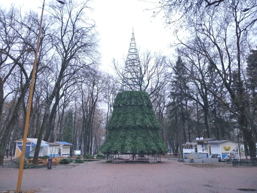 Зеленые искусственные конусы вспыхнули огоньками в парке Культуры и отдыха, на площади Старый Торг и на Театральной площади.