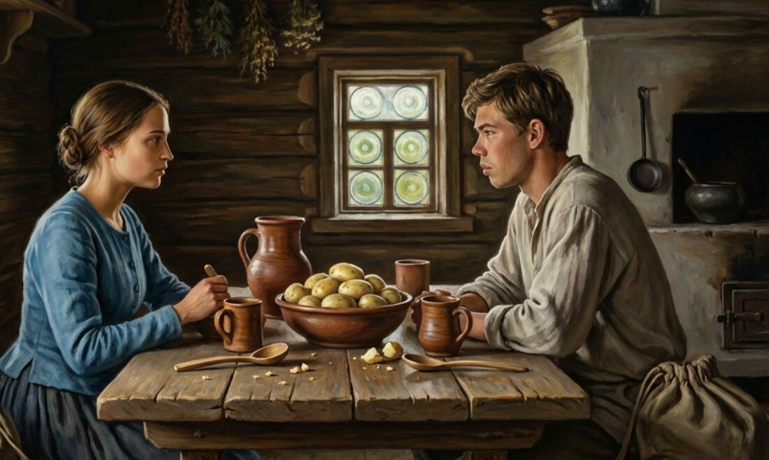 Пока готовила, вместе с Игнатом расспрашивали о Фроле, Евдокии, Кондрате. Интересовались, как живет деревня.