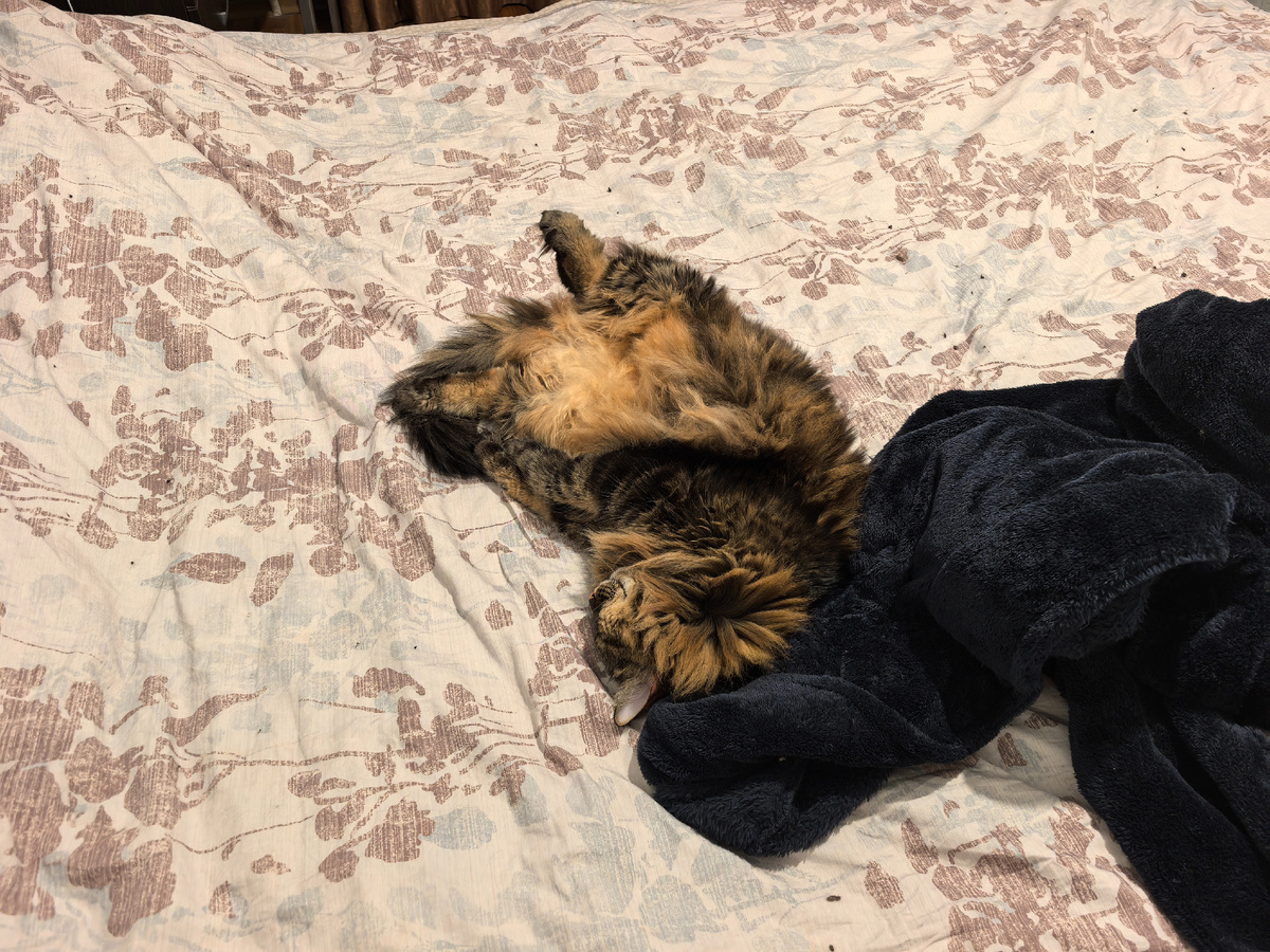 Ну а я сначала помесил новый пледик, вы это видели на видео. А потом стянул его и спать улёгся: