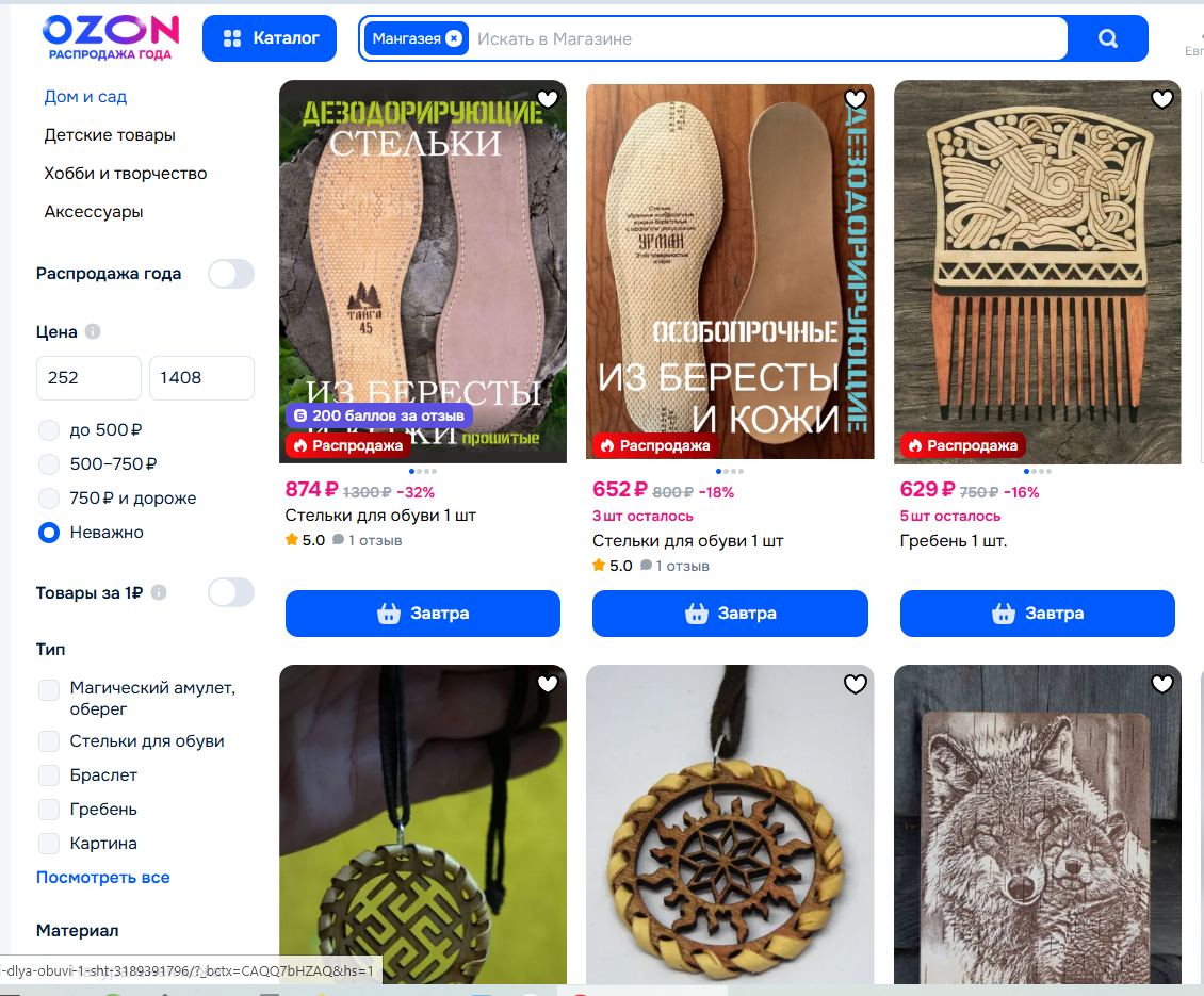 Я сразу понимал, что с ОЗОНом не всё будет гладко. Ещё до регистрации поиграв с их калькулятором, осознал, что там можно торговать только большими объёмами, иначе выгоды никакой. Но я работать умею, могу довольно большие объёмы производить в сжатые сроки, так что решил рискнуть. Для начала всё же выбрал вариант торговли в формате FBS - это когда каждый проданный товар отправляю сам, поштучно. Другой вариант, FBO, предполагает отправку партии товара на склад ОЗОН, и тогда обещается больший доход, но за хранение на складе надо платить, при этом есть кучка нюансиков, съедающих прибыль: от удалённости склада от покупателя (самому склад выбрать нельзя) до того факта, что ОЗОНу нет никакого смысла продвигать ваш товар, если он уже и так получает с вас деньги за его хранение. То есть, чем меньше вы продадите, тем меньше работы ОЗОНу, а денежка капает. Итак, продал я за первые 10 дней три товара. По сравнению с Ярмаркой Мастеров, на которой давно нет продаж, это неплохое начало. Я нахожусь в