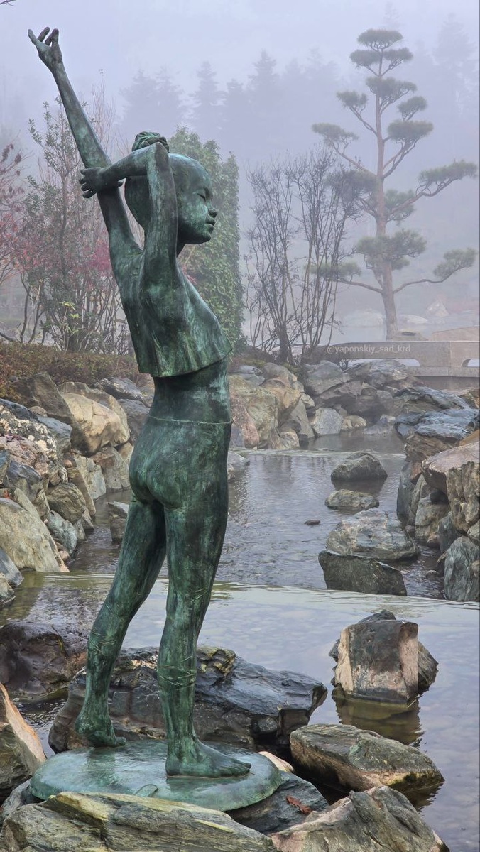 » в японском саду парка. ⠀ “Бронзовая девочка застыла на грани между ночью и рассветом —чистая, открытая, как сама душа в момент её пробуждения. Её фигура, устремлённая к солнцу, становится живой метафорой той невинной части нас, что каждый день⠀ рождается заново, ещё не тронутой тревогами и сомнениями.⠀ ⠀ В её поднятых руках — первозданная доверчивость к миру. Она раскрывается⠀на встречу утру, как цветок, ещё не знающий о возможных бурях. Это момент совершенной искренности, когда душа, подобно ребёнку, готова принять весь мир целиком — без страха и предубеждений.⠀ Девочка не просто встречает рассвет — она воплощает саму возможность нового начала, ту чистую точку, где прошлое ещё не диктует условий будущему.⠀ ⠀ Скульптура напоминает: в каждом из нас живёт эта нетронутая, светлая часть,⠀ что каждое утро пробуждается первой. Она приглашает вспомнить собственное⠀ «утро» — и, может быть, пережить его заново.”⠀ ⠀ Скульптор Юлия Федотова⠀ 📸@yaponskiy_sad_krd 4️⃣5️⃣5️⃣5️⃣ 💜 Японский сад в