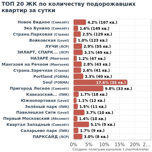 ) 🏆 ЛИДЕРЫ ПО РОСТУ: Самолёт 20 ЖК 396кв +7,3% ПИК 16 ЖК 76кв +11,3% ЛСР 7 ЖК 125кв +2,9% Брусника 5 ЖК 12кв +3,0% 1 ДСК 4 ЖК 9кв +7,4% Level 4 ЖК 156кв +3,4% Основа 3 ЖК 4кв +5,1% FORMA 3 ЖК 78кв +7,0% Аквилон 3 ЖК 9кв +0,4% 3SGroup 2 ЖК 3кв +22,2% 👇 Полная статистика: 📲 В Telegram — быстро посмотреть 🌐 На MskMeter.ru — графики цен и скидки за любой период