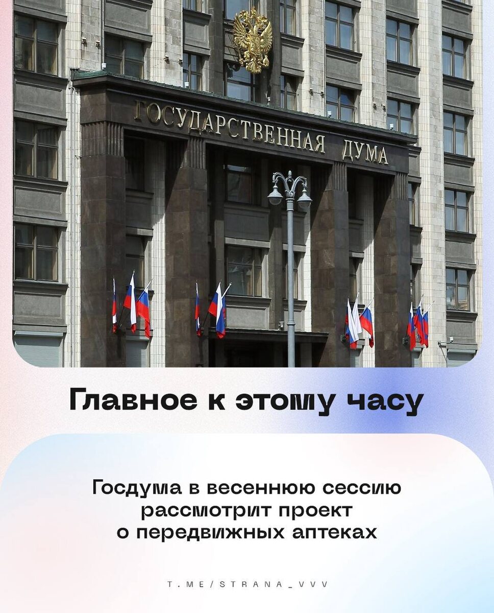 : 🔹Госдума в весеннюю сессию рассмотрит проект о передвижных аптеках. 🔹Путин поздравил сотрудников органов безопасности с профессиональным праздником. 🔹Пособие при рождении ребенка в 2026 году составит 28 773 руб., свидетельствует закон о бюджете Соцфонда РФ на 2026—2028 годы. 🔹Мошенники обманывают россиян объявлениями о распродаже красной рыбы и икры, сообщили в МВД. 🔹Снижение ключевой ставки до 9% возможно к концу 2026 года, заявил депутат Госдумы Аксаков. 🔹Гонконгский грипп может стать новой причиной пандемии — вирусолог Малинникова. 💰Курсы валют: доллар — 📈80,72; евро — 📈94,51; юань — 📈11,45. ✅ «В Стране» в MAX