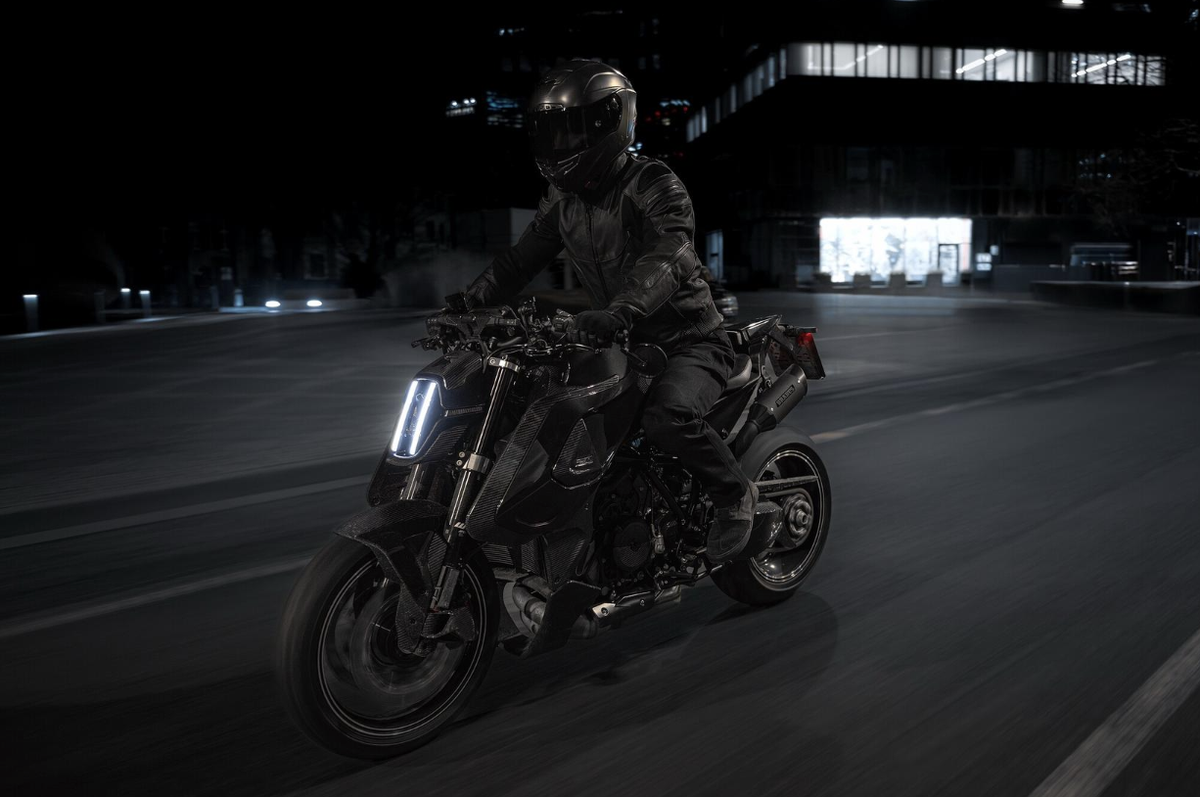 Новый этап в партнёрстве Brabus и KTM Компания Brabus официально представила долгожданную новинку — Brabus 1400 R Signature Edition, лимитированную версию, созданную на базе флагманского naked-байка KTM 1390 Super Duke R EVO. Модель позиционируется как прямой преемник Brabus 1300 R и демонстрирует эволюцию концепции «грубой силы в изысканной обёртке». Всего будет выпущено лишь 100 экземпляров, каждый — с индивидуальной нумерацией и высочайшим уровнем ручной отделки. Сердце мотоцикла: LC8 с увеличенной отдачей Под обтекаемым чёрным обвесом скрывается знакомый, но доработанный 1350-кубовый V-образный двухцилиндровый двигатель LC8. Его мощность выросла до 190 л.с., а пиковый крутящий момент достиг 145 Н·м — это на 10 л.с. и 5 Н·м больше, чем у предшественника (1300 R: 180 л.с. / 140 Н·м). Трансмиссия — 6-ступенчатая КПП с функцией быстрого переключения без сцепления (Quickshifter). Система выхлопа — фирменная подседельная двойная труба Brabus, обеспечивающая агрессивный, «жёсткий» звук.