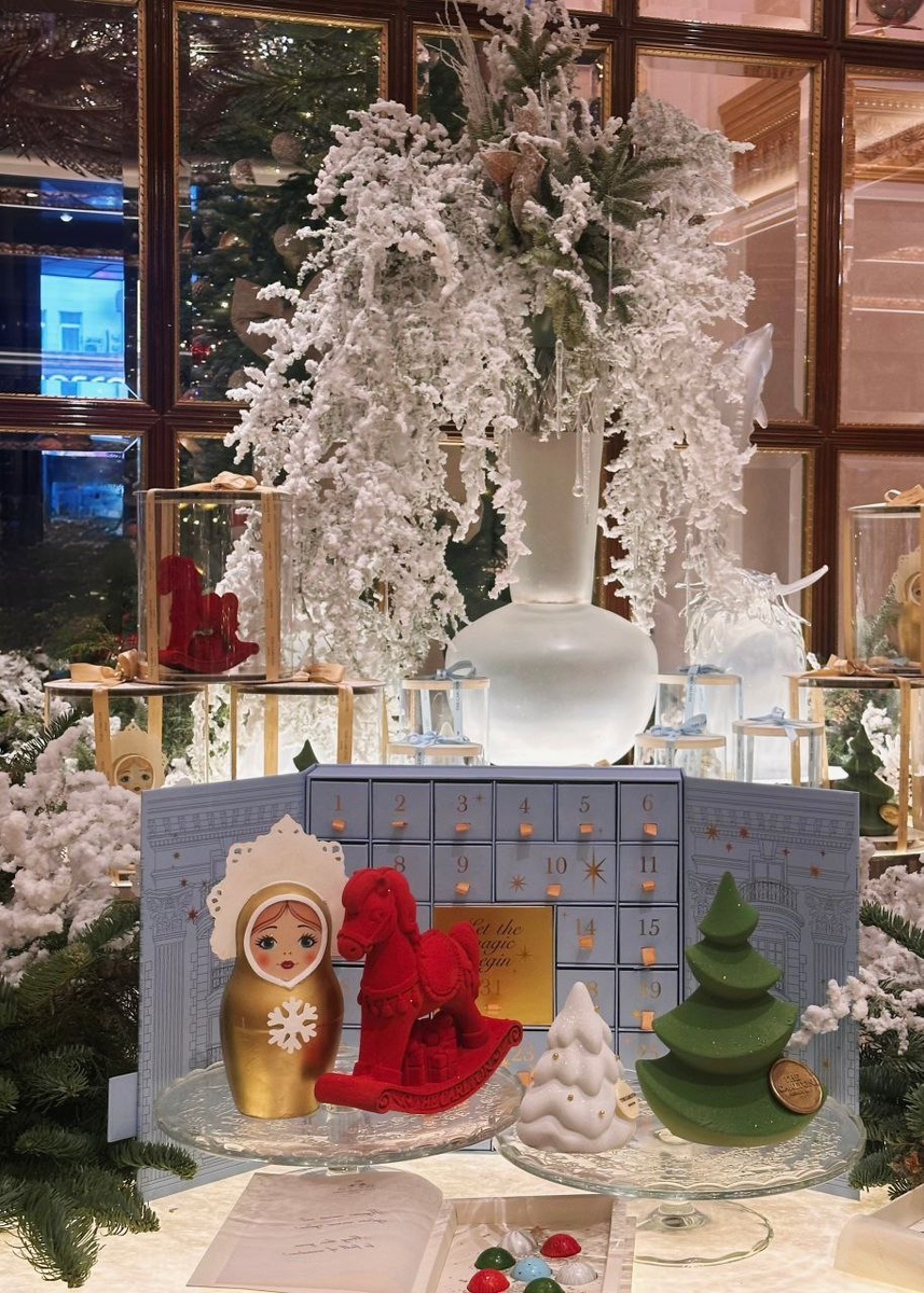 🔵В этом году центральными элементами отельного декора стали символы традиционной русской культуры - вращающаяся огромная юла и золотая матрёшка с украшенным жемчугом и камнями кокошником. Огромная лестница декорирована еловыми ветками и бантами, а две елки в фойе и баре на первом этаже украшены изумительно. 📸 Елена Паличук Московские истории 🎞️ Лучшие места и истории 👈🏻