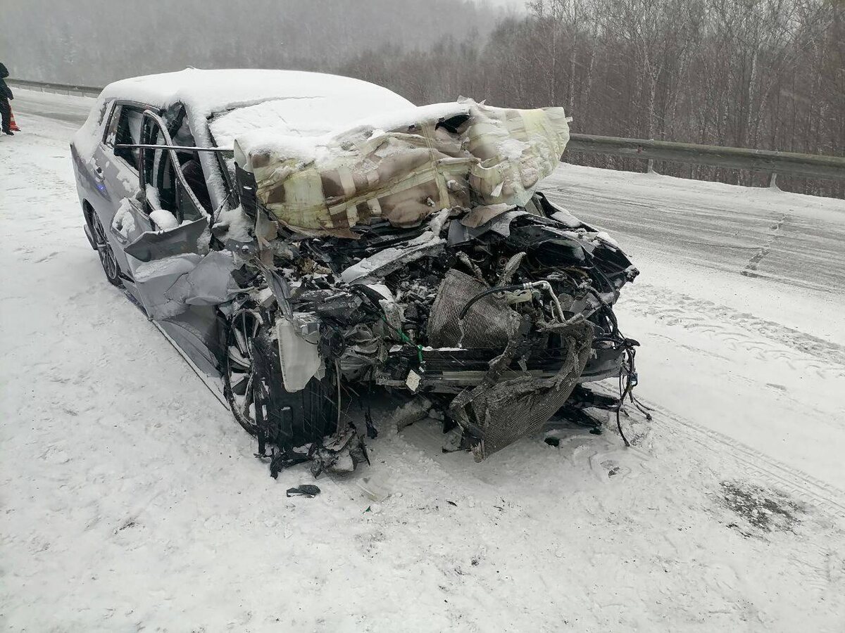 На автодороге «Амур» в Архаринском округе водитель автомобиля Subaru Levorg допустил наезд на стоящий SKANIA. В результате автоаварии один человек погиб, также имеются пострадавшие. #АОТВ Фото: t.me/gibdd28