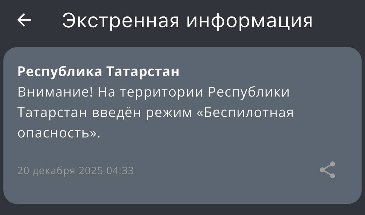 В Татарстане с 4:33 действует режим «Беспилотная опасность».