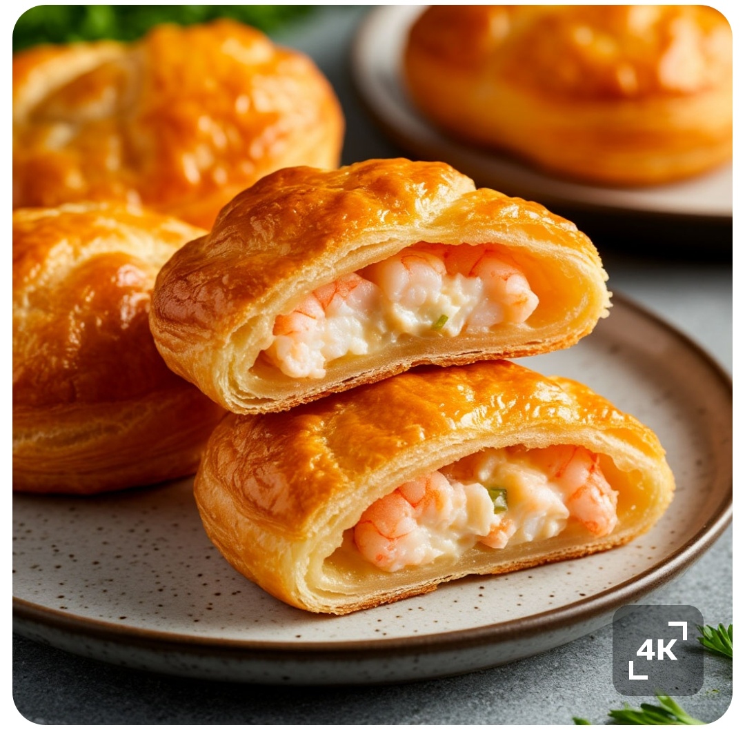 Слоеные пирожки с креветками и сыром — это изысканное и одновременно простое в приготовлении блюдо, которое отлично подойдет как для праздничного стола, так и для уютного семейного ужина. В этой статье я поделюсь подробным рецептом приготовления вкусных и ароматных слоек, которые сочетают в себе нежность морепродуктов и кремовый сыр. Ингредиенты: - Тесто слоеное — 500 г (лучше брать готовое, размороженное) - Креветки очищенные (предварительно отваренные) — 300 г - Твердый сыр (например, чеддер или пармезан) — 150 г - Лук репчатый — 1 небольшая головка - Чеснок — 1 зубчик - Сметана или сливки — 2 ст. ложки - Петрушка свежая — небольшой пучок - Яйцо куриное — 1 шт. (для смазывания) - Соль, молотый черный перец — по вкусу - Растительное масло — 1 ст. ложка Приготовление: 1. Подготовка начинки. Креветки необходимо очистить, если вы используете сырые, предварительно отварите их в подсоленной воде с лавровым листом и перцем, затем остудите и обсушите. Лук очистите
