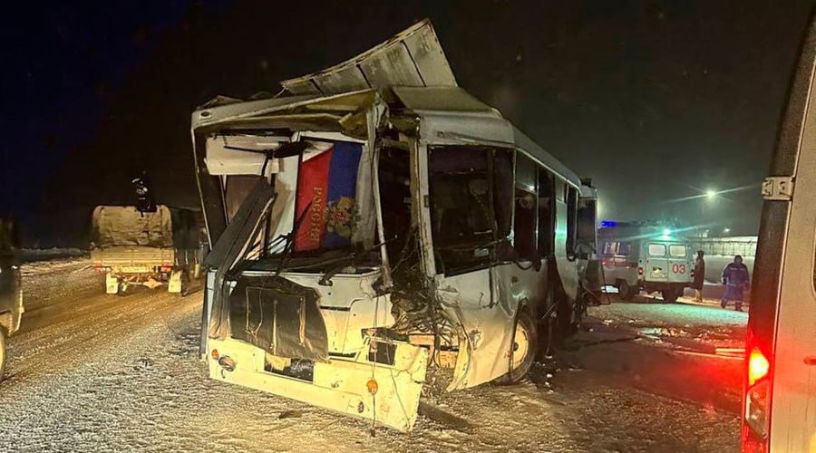 Грузовик «Вольво» столкнулся с «Нефазом» в Коченёвском районе Новосибирской области. В автобусе были 20 сотрудников одного из местных предприятий. «Водитель автобуса, 1977 года рождения, и шесть пассажиров доставлены в лечебное учреждение», — сообщили в полиции. По предварительным данным, фура под управлением мужчины 1967 года рождения не предоставила автобусу преимущество при повороте. Подписаться| Прислать новость| Помочь бустами