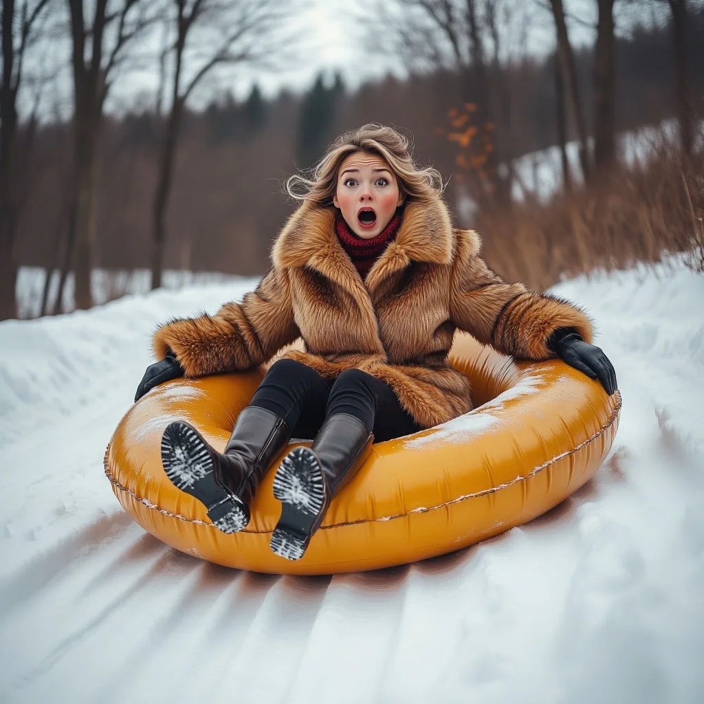 - Куда? - безуспешно попытался остановить меня охранник. Ничего не слыша, охваченная охотничьим инстинктом, я побежала к спуску , где резко затормозила. Шеф стоял ниже меня и куда-то всматривался. Я лихорадочно заметалась, не к месту вспомнив, что я в шубке, ботинки на высоких каблуках, ну и как вишенка на торте - я никогда не каталась на " ватрушке". Шеф посмотрел вверх. Я, ругая себя за отсутствие конспирации, прикрылась " ватрушкой, и пригнулась, вероятно, считая, что меня не видно. Нога поехала вперёд, я шлепнулась на " ватрушку", оседлав ее. " Та двинулась с места, не сколько раз крутанулась и я спиной вперёд, с распущенными волосами, в расстёгнутой шубейке, задранными ногами, судорожно вцепившись в " ватрушку " понеслась вниз. Мельком заметила вытаращенные глаза шефа. Помахать ему сил не было - я стремительно неслась вниз. Кувыркнувшись через голову, немножко полежала, отходя от страха, поднялась. Шеф исчез. Даже если бы и продолжал стоять, в дальнейшем наблюдении смысла не было.