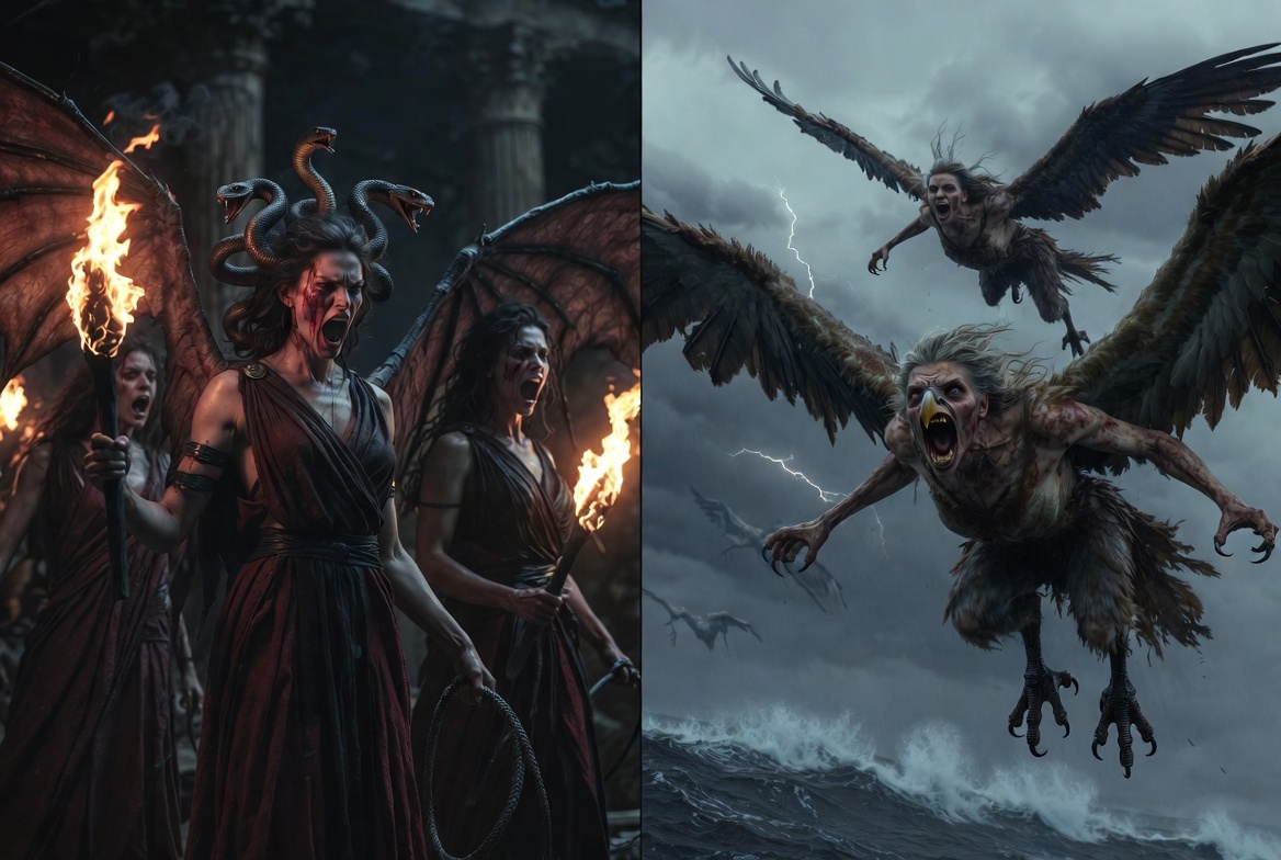 Есть несколько причин, почему фурий и гарпий в массовой культуре бросают в один котёл. Обе группы – женские сверхъестественные существа, неприятные и опасные. И фурии, и гарпии могут летать, их легко представить «крылатыми ведьмами». В литературе и кино их функции иногда смешивают: фурий могут рисовать как птицеподобных монстров, а гарпий – как демонических мстительниц.