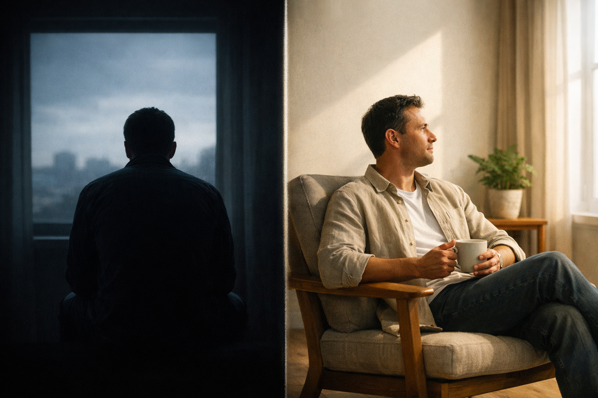 Вы остаётесь одни в квартире после шумного дня. Тишина. И вдруг накатывает — сначала непонятное беспокойство, потом тяжёлое, гнетущее чувство, от которого хочется немедленно включить телевизор или написать кому угодно, лишь бы заполнить пустоту. Это одиночество. А бывает по-другому: вы сознательно отменяете планы, закрываете дверь, остаётесь наедине с собой — и через полчаса ловите чувство глубокого покоя, ясности в голове и восстановления сил. Это уединение. Два внешне похожих состояния, дающих диаметрально противоположный эффект. Почему одно истощает, а другое наполняет, и как научиться превращать первое во второе?