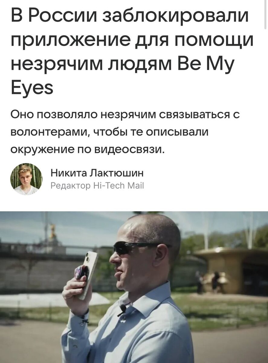 ЧТО: РКН заблокировал приложение для слепых Be My Eyes — оно помогало незрячим ориентироваться в пространстве