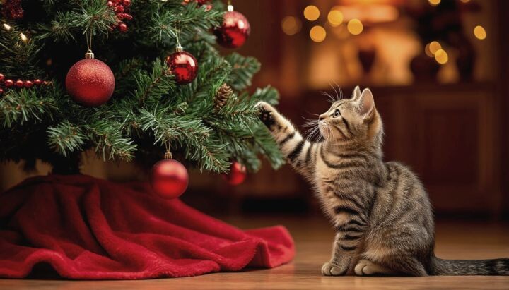Кошатникам не кажутся смешными ёлки-невесты и ёлки, закреплённые на потолке Новый год — праздник, который ассоциируется с радостью, весельем и уютом. Живые ёлки и сосны добавляют дому особую атмосферу праздника. Но как быть, если дома живёт кошка, которая любит исследовать всё новое и интересное? Рассмотрим несколько вариантов, как правильно установить новогоднее дерево, чтобы оно оставалось устойчивым и привлекательным для всех членов семьи. Выберите такое место для дерева, где кошка сможет свободно перемещаться вокруг, но при этом сама конструкция останется стабильной. Избегайте узких проходов и мест рядом с мебелью, которую кошка может использовать как трамплин для прыжков на верхушку дерева. Для дополнительной устойчивости рекомендуется закрепить ствол к потолку или стене с помощью специальных креплений. Это предотвратит падение елки, даже если кошка решит поточить когти о кору или попробовать добраться до игрушек. При украшении ёлки старайтесь избегать мелких игрушек, которые могу