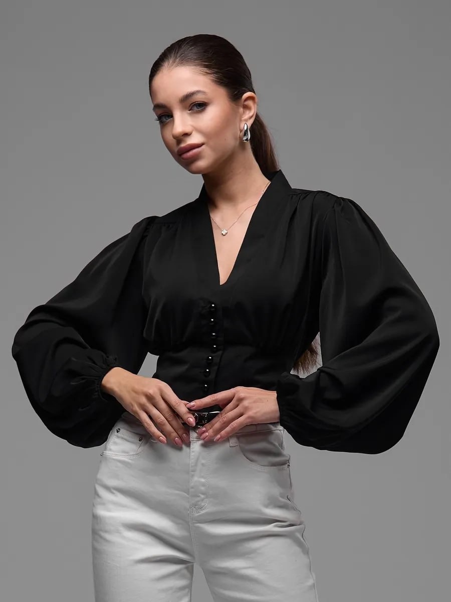 Оверсайз блузка Однотонная блузка свободной посадки, с длинным объёмными рукавами и воротником - стойка. Отлично сочетается с любыми предметами гардероба. ✍️ Артикул: 188988313 👌 Размеры: от 40 до 50 🔥 Купили более 4,1 т. раз! 👉За блузкой👈 ___ Как тебе❓ ❤️ / 💔 Топовый look с Wildberries 💶💵💴