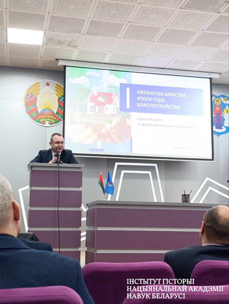 16 декабря 2025 г. старший научный сотрудник центра военной истории Беларуси Института истории НАН Беларуси Виталий Гарматный в рамках проведения Единого дня информирования на тему «Пятилетка качества — итоги года благоустройства» выступил в качестве спикера перед работниками Минского завода шестерён с докладом об истории, структуре и компетенции VII Всебелорусского народного собрания, повестке его работы, а также об основных итогах Года благоустройства и поставленных планах на пятилетку качества (2025 — 2029). Спикер отметил, что только совместными усилиями возможно добиться выполнения поставленных задач действующей пятилетки, сделать её более результативной.