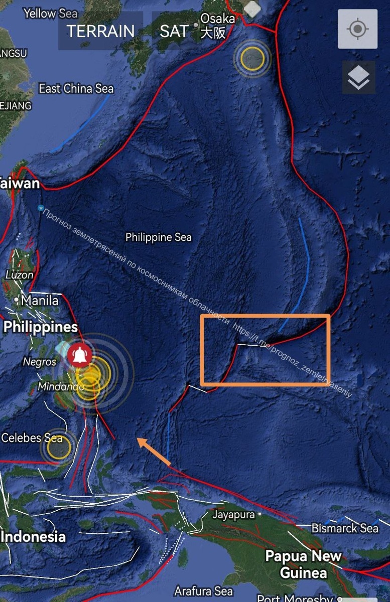 0. В фокусе Марианские острова, Микронезия и Палау. Хотя и Филиппины может затронуть, их пока больше всего трясет, а вектор направлен именно туда. ===== The southeast of the Philippine Plate at the junction with the Carolina Plate continues to show signs for an earthquake stronger than M7.0. The Mariana Islands, Micronesia and Palau are in focus. Although the Philippines may be affected, islands are still the most shaken, and the vector is directed there.