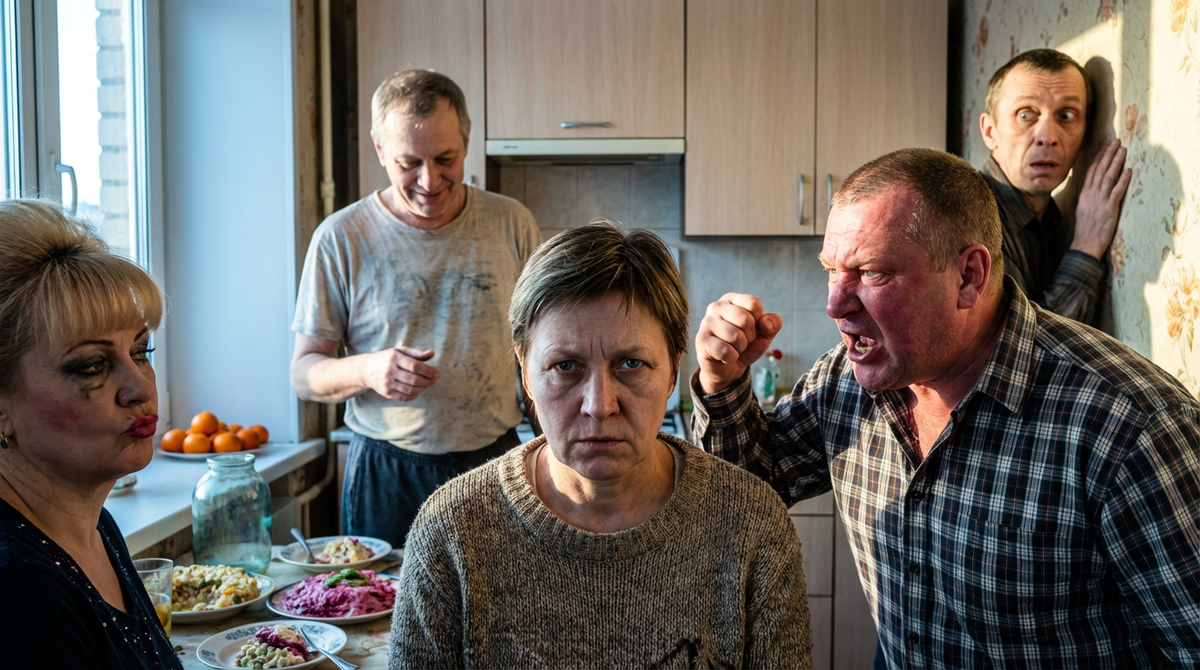Ольга подошла к столу. Спокойно взяла из рук Толяна бутылку водки, которую он только что открыл, и закрутила крышку обратно. В кухне повисла тишина. Даже Петрович перестал бренчать.