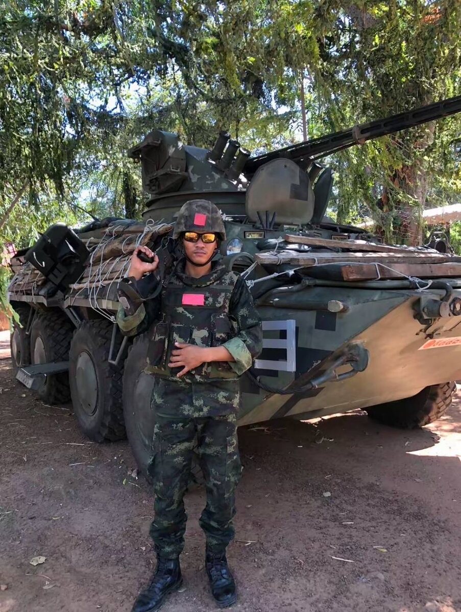 А это уже тайский БТР-3Е1 с импровизированной видимо наспех сделанной защитой из местных досок.