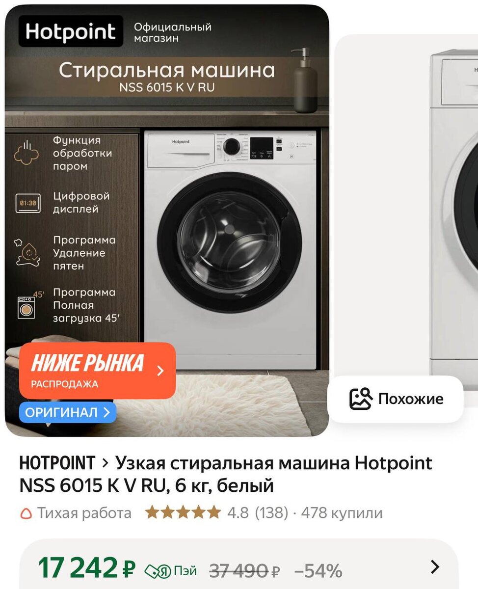 😐 Узкая стиральная машина Hotpoint NSS 6015 K V RU, 6 кг, белый https://market.yandex.ru/cc/8JT38Y 🛍DEC122-AF — скидка 100 ₽ на один любой заказ от 5000 ₽ ✅ Канал по скидкам 🔣 Бот с промокодами