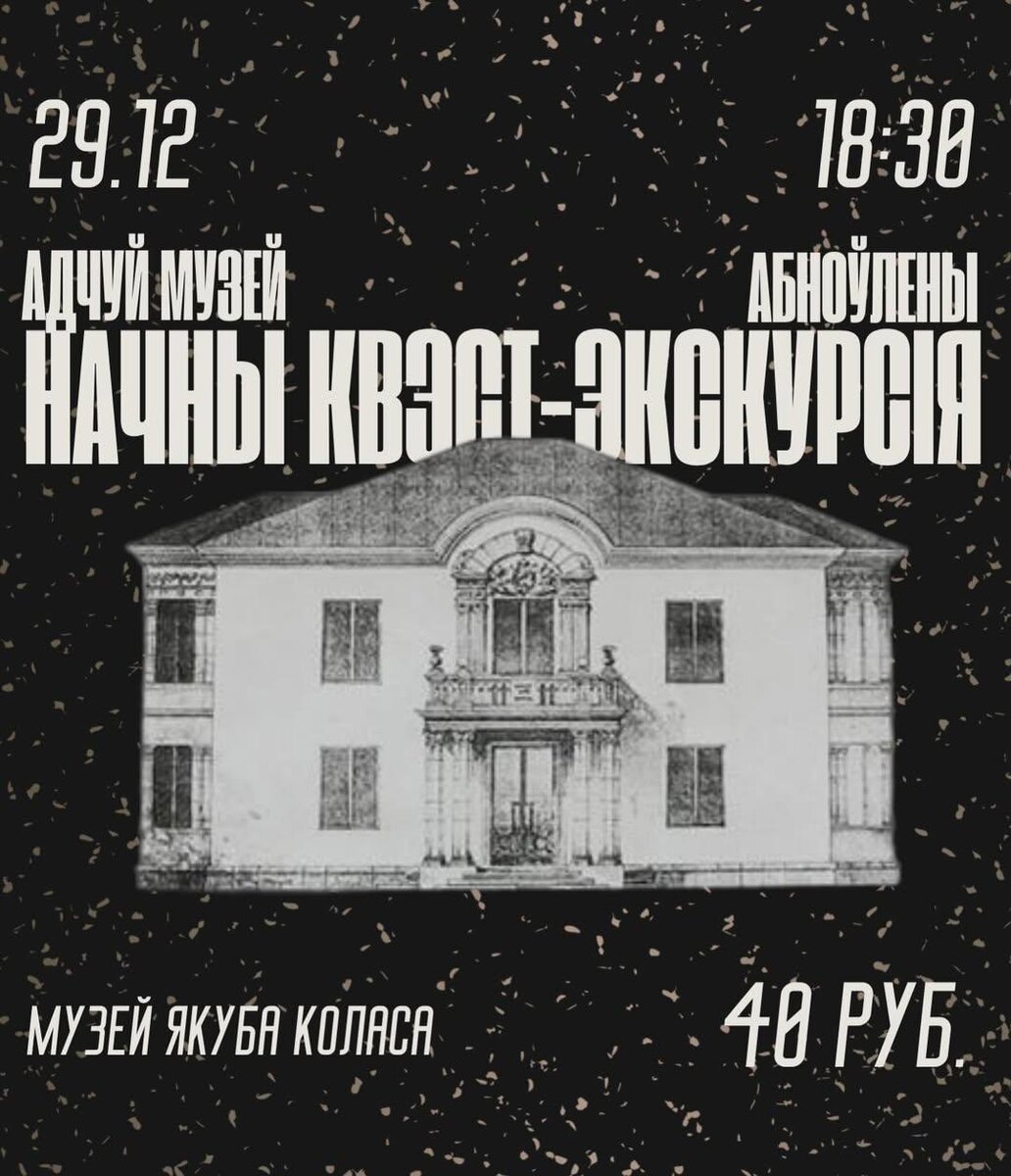 ? Последняя ночная экскурсия по музею Якуба Коласа пройдет 29 декабря. Какая атмосфера царит в залах Дома Коласа ночью, когда последний посетитель покидает музей, а сотрудники закрывают двери до следующего утра? Можно узнать, посетив экскурсию. Гости музея смогут не только посетить ночной музей, но и принять участие в обновленной ночной квест-экскурсии. Это хорошая возможность познакомиться с домом Коласа в таком необычном формате. • 29 декабря в 18:30 Стоимость: 40 byn. Обязательна предварительная запись. 📍Минск, ул. Академическая, 5, Музей Якуба Коласа #минск_вандруй ☕️ Вандруй | Подписаться ● Самые интересные посты