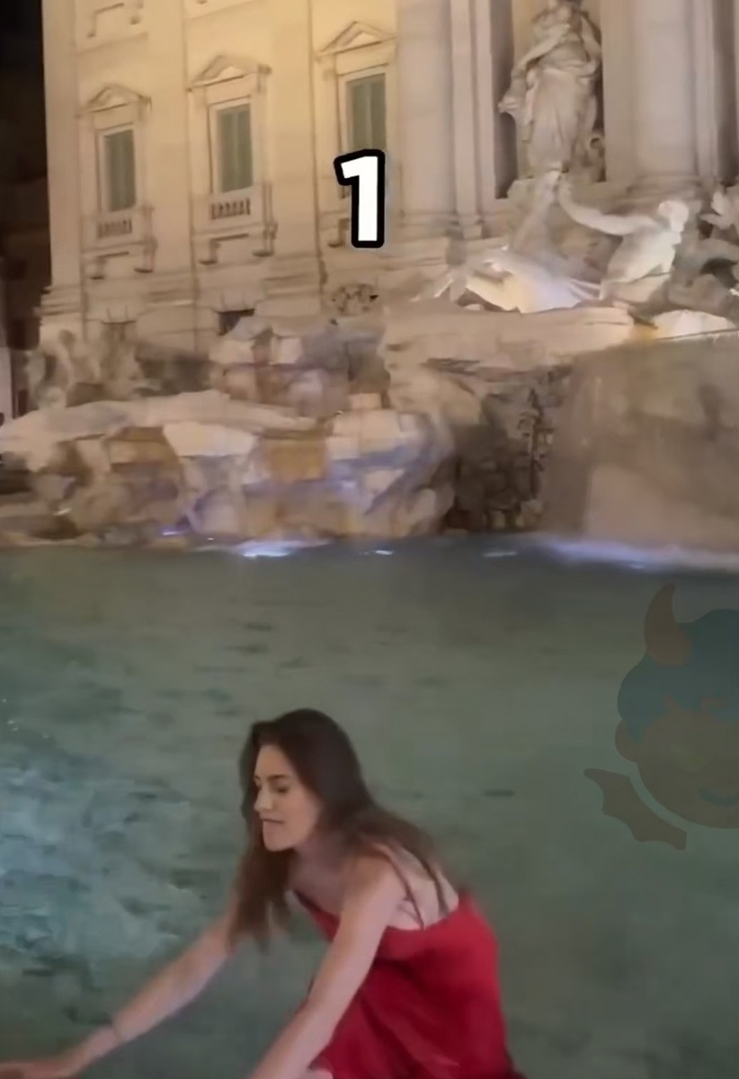 Девушка в красивом платье решила, что ради эффектного видео можно и в фонтан Треви нырнуть
