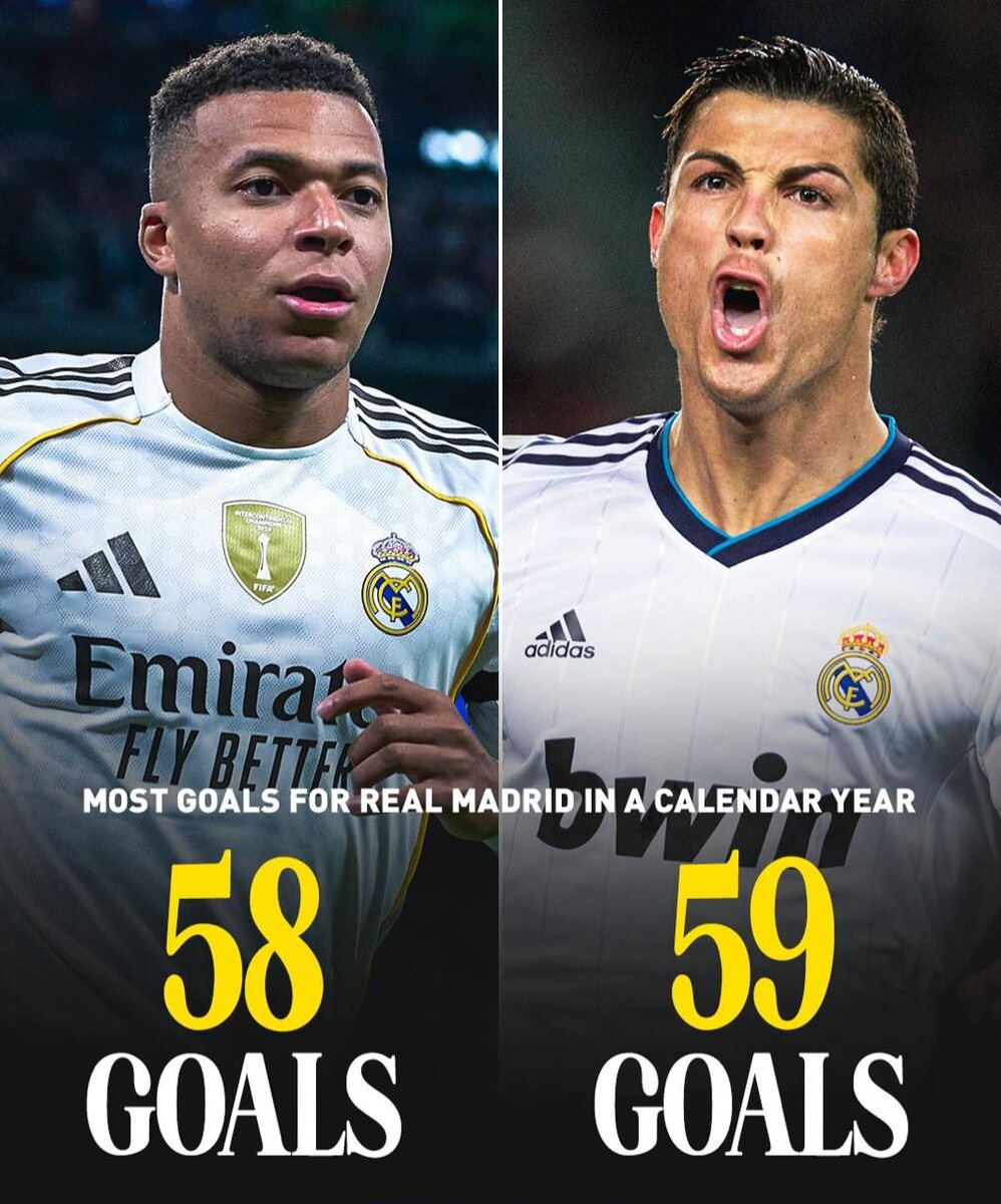🇪🇸 У Килиана Мбаппе осталась одна игра, чтобы побить рекорд Криштиану Роналду по количеству голов за календарный год (2012 и 2013) в