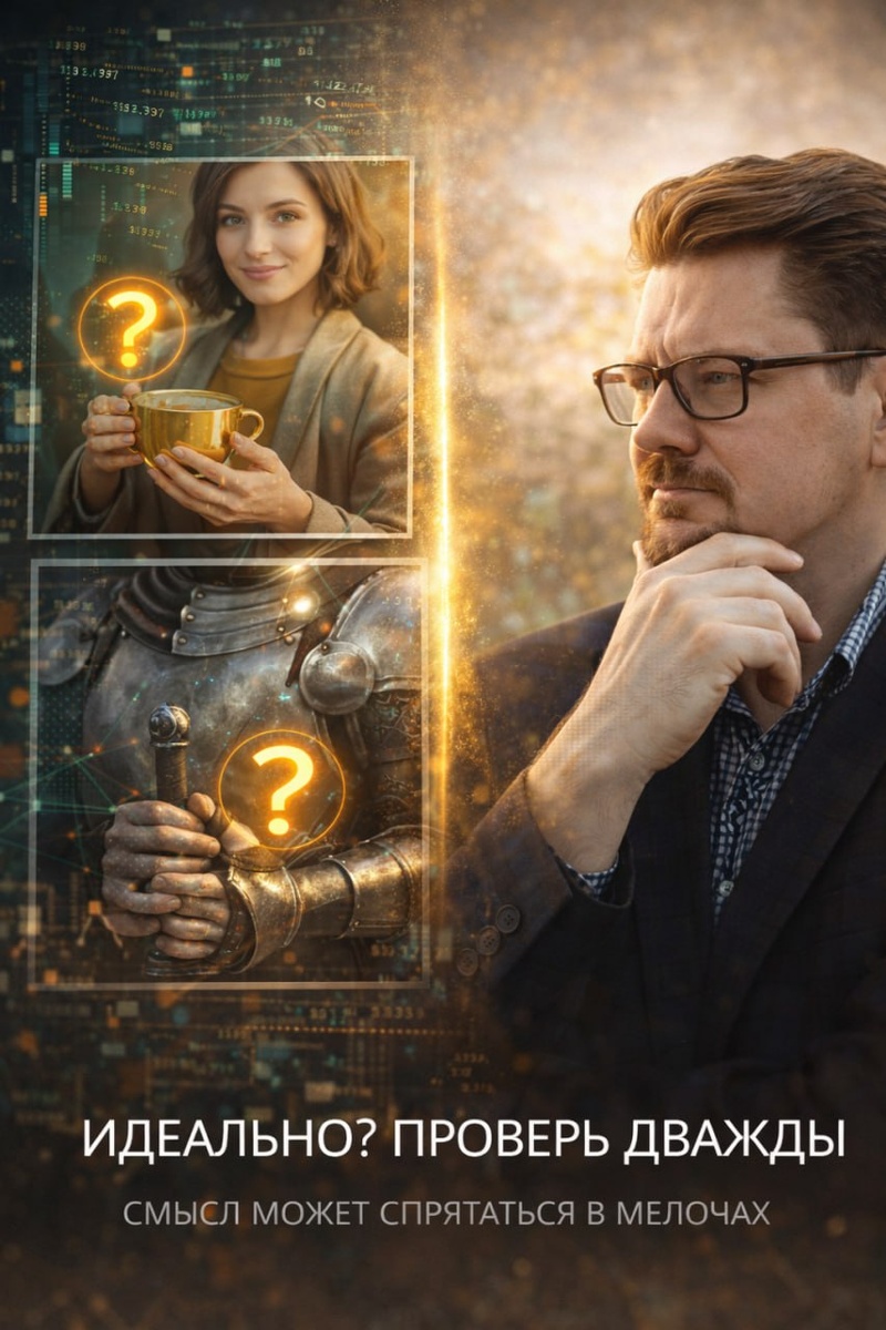 Есть момент, который рано или поздно ловит каждый, кто «подружился» с ИИ. Сначала он восхищает: быстро, гладко, уверенно. А потом — бац — и ты видишь, что он вроде бы всё сделал правильно… но смысл где-то потерялся по дороге. Это не потому, что ИИ «плохой». И не потому, что он «ещё не дорос». Это встроено в саму природу инструмента. ИИ работает с вероятностями. Он очень хорошо угадывает, как обычно бывает. Но смысл — штука другая. Смысл — это «зачем», «что я имел в виду» и «какую задачу я решаю». И вот там ИИ иногда начинает плыть. Самый простой пример — картинки. Ты просишь «реалистичный портрет». Он делает. Красиво, свет, кожа, эмоция. И вдруг — пальцы. Лишние, кривые, странные. Причём не всегда сразу заметно. На первый взгляд всё идеально, но стоит задержать внимание — и реальность начинает «шуршать», как плохо склеенный монтаж. Это важный сигнал: ИИ может уверенно собирать картинку из кусочков правдоподобия, но не чувствует, что «пальцы должны быть такими-то». Он не держит внут