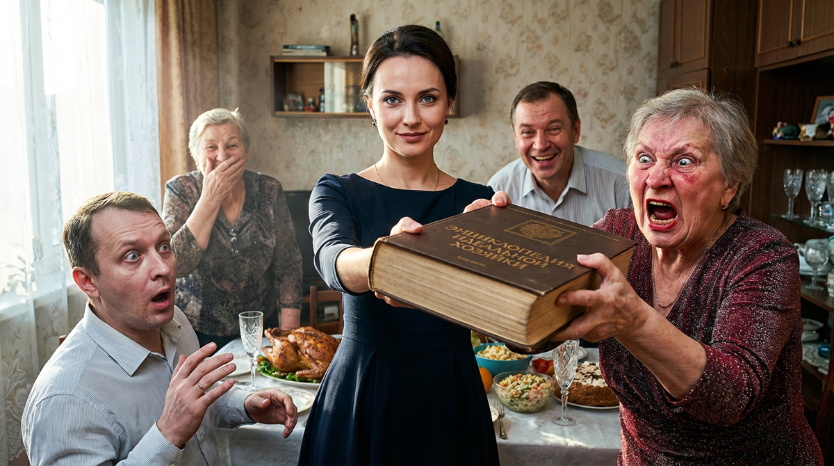 Ирина положила тяжелый том на стол перед свекровью. Рядом с ее тарелкой, на которой лежали остатки той самой "бледной" утки.