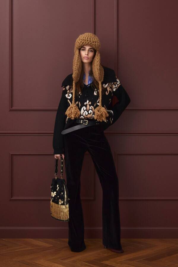 В этом сезоне Etro делает ставку на вязаные шапки как ключевой элемент образа. Объёмные, с фактурной вязкой или деликатной рельефной текстурой, они