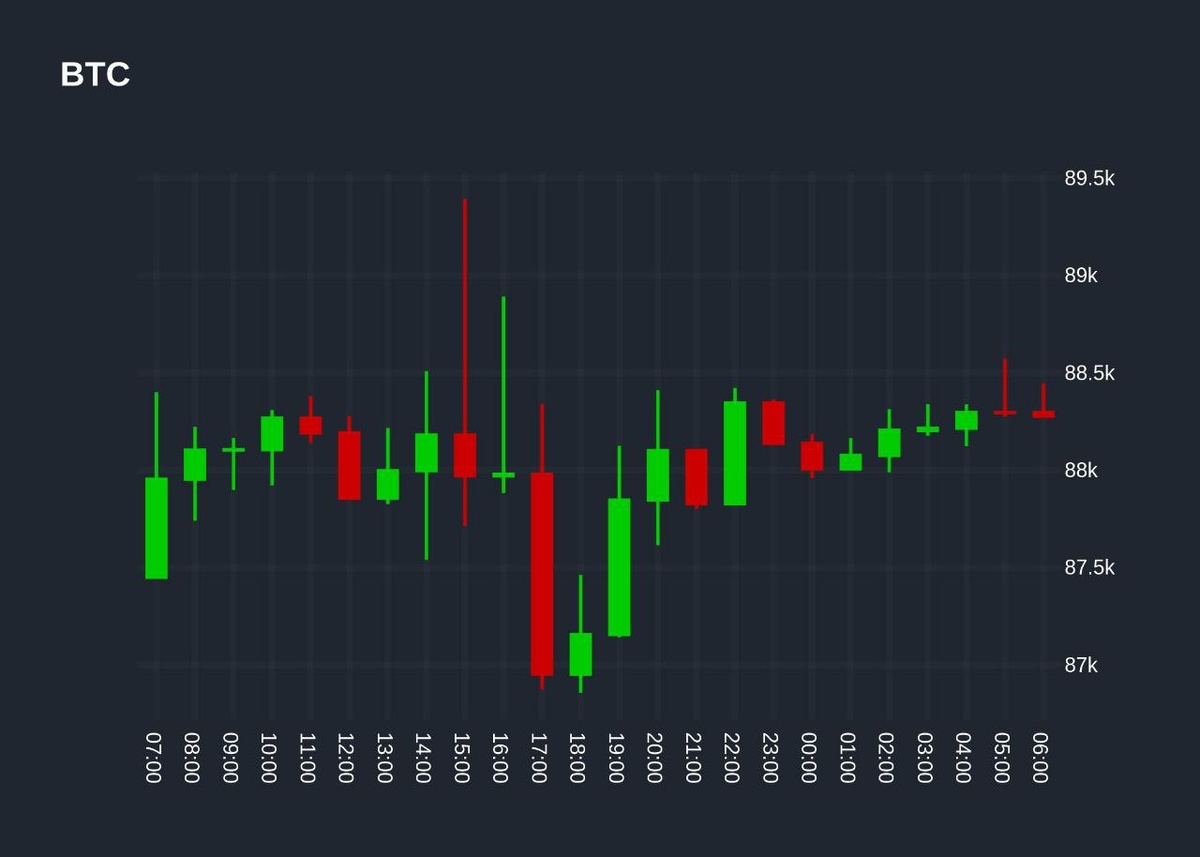▫️ Текущая цена: 88277.12 (1.08%) ▫️ Объем за 24 часа: 874,856,370.47