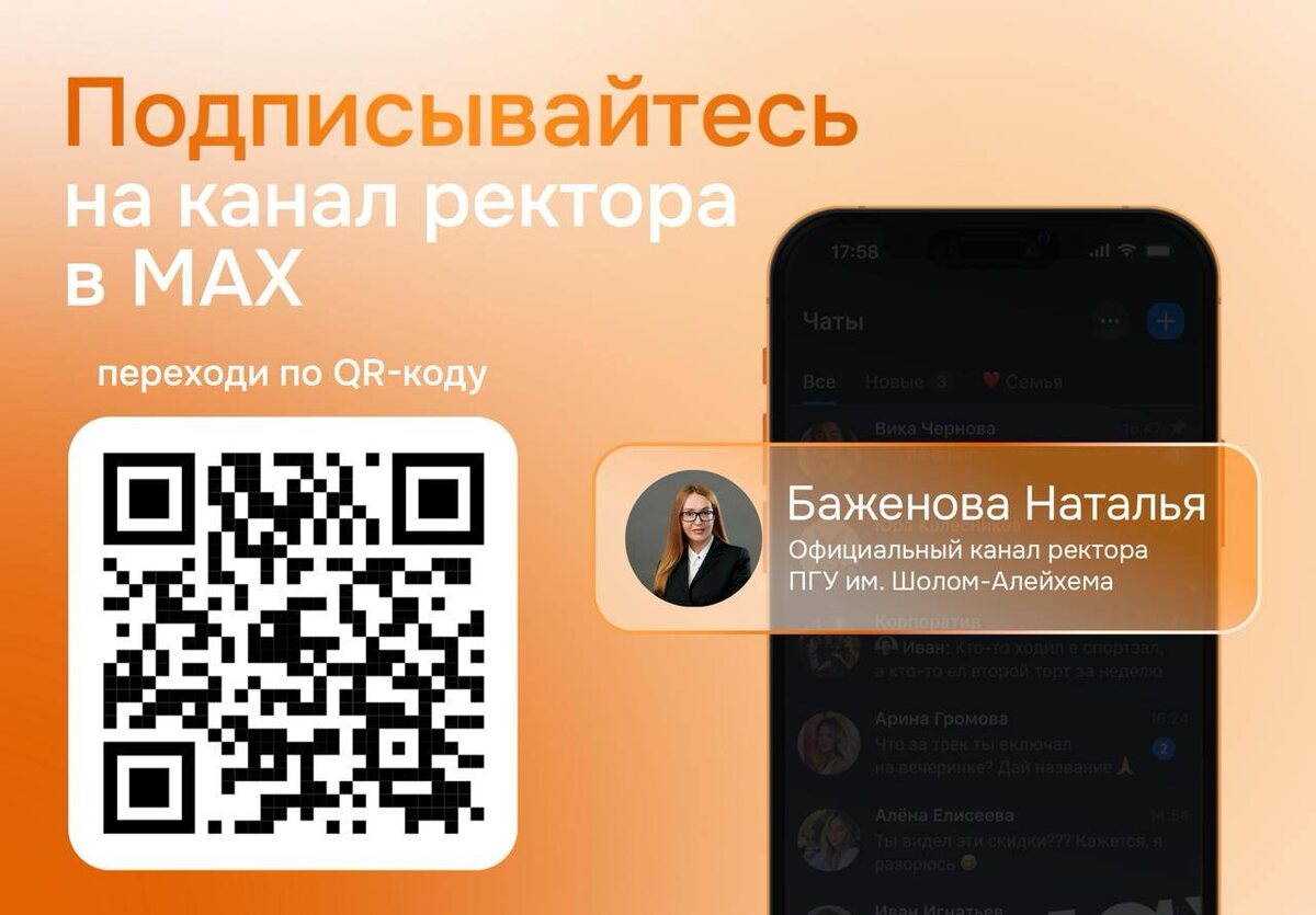 ⚡️Канал ректора ПГУ имени Шолом-Алейхема теперь в МАХ