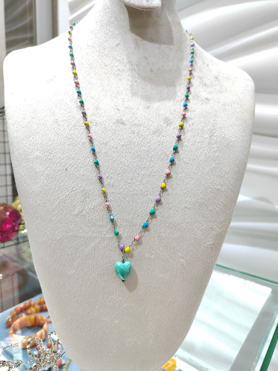 Фарфоровое сердце на цепочке из эмалированных бусинок также в виде сердечка 💟