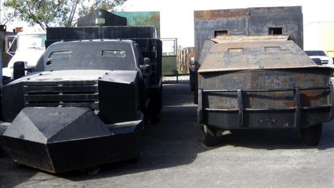 "Наркотанки" используются как для перевозки наркотиков, так и в противостоянии правительственным войскам и соперничающим группировкам. В одном только 8-м военном округе, в который входит мексиканский штат Тамаулипас было захвачено свыше 110 бронированных машин бандитов, в том числе и 20 ". На первый взгляд кажется, что это декорации из фильма. Но нет, это реальное чудо вражеской техники