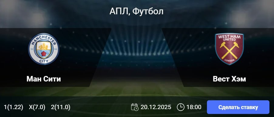 Хозяева поля демонстрируют невероятную результативность, забивая три и более мяча в шести из семи последних домашних игр. «Вест Хэм», в свою очередь, крайне уязвим в обороне на выезде. Ключевой фигурой противостояния должен стать Эрлинг Холанд, для которого лондонцы являются одним из самых удобных соперников: в 6 матчах АПЛ он забил им 9 голов, оформив два дубля и один хет-трик. Все указывает на то, что атака «Сити» вновь проявит себя во всей красе. 🎯 Наш прогноз: Индивидуальный тотал «Манчестер Сити» больше 2,5 с 🎲 коэффициентом 1.73. 👉 СДЕЛАТЬ СТАВКУ В БК WINLINE 🎁 ФРИБЕТ WINLINE - 3000₽ (промокод: BETWIN) 👉 СМОТРЕТЬ ПРОГНОЗ 👇 Подпишись на нас 🧿 ВКонтакте ✈️ Телеграм 📎 Сайт