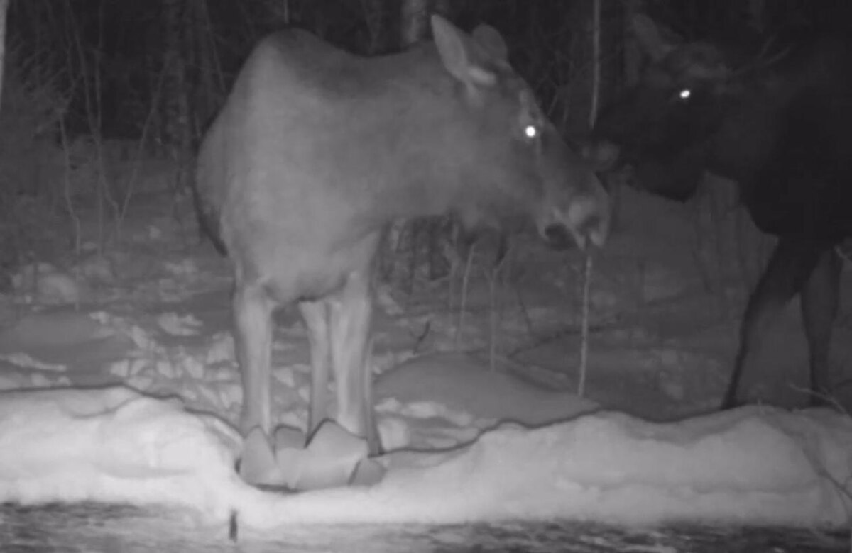 Видео: в Ленобласти болтливые лоси с явным интересом изучили фотоловушку