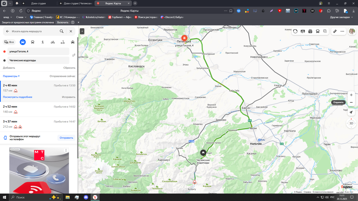 Из Пятигорска путешествовали на своем автомобиле по ближайшим локациям. И вот решили посетить и Чегемские водопады. Находятся они в Кабардино- Балкарии Чегемский район село Хушто-Сырт. Из Пятигорска 150 км, мы ехали примерно 2 часа 40 минут.