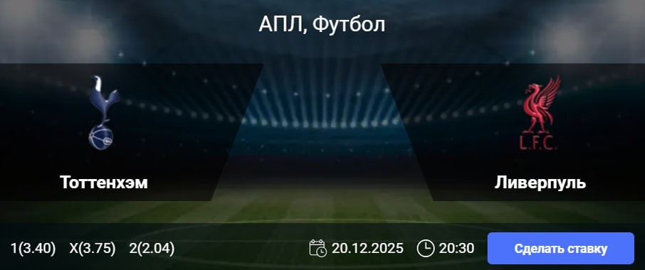 История личных встреч также указывает на высокую вероятность результативного матча. В десяти предыдущих очных поединках в чемпионате обе команды неизменно обменивались голами, а в шести последних было забито как минимум три мяча. Более того, на стадионе «Тоттенхэма» пять последних встреч в рамках АПЛ завершались с тремя и более голами. Учитывая все факторы, стоит ожидать, что команды вновь подарят болельщикам зрелищный и богатый на голы футбол. Прогноз betssoccer.ru: «Тотал больше 3.0» с коэффициентом 2.02. 👉 СДЕЛАТЬ СТАВКУ В БК WINLINE 🎁 ФРИБЕТ WINLINE - 3000₽ (промокод: BETWIN) 👉 СМОТРЕТЬ ПРОГНОЗ 👇 Подпишись на нас 🧿 ВКонтакте ✈️ Телеграм 📎 Сайт