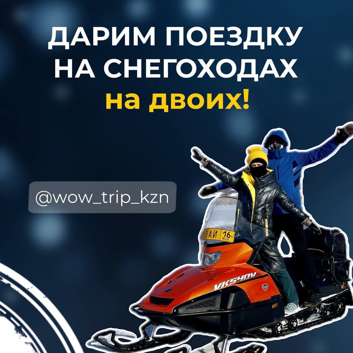 ?🔥 Прямо сейчас на канале WOW TRIP KZN проходит розыгрыш поездки на снегоходах на двоих! 😍 Для участия подпишитесь и заходите в закреплённое сообщение👌🏻 А ещё у них есть всё для классного отдыха: джипы, квадроциклы, тир, баня, глэмпинг и организация праздников. Отдельная фишка - подарочные сертификаты на активный отдых с вашими фото🔝 Все подробности здесь: @wow_trip_kzn