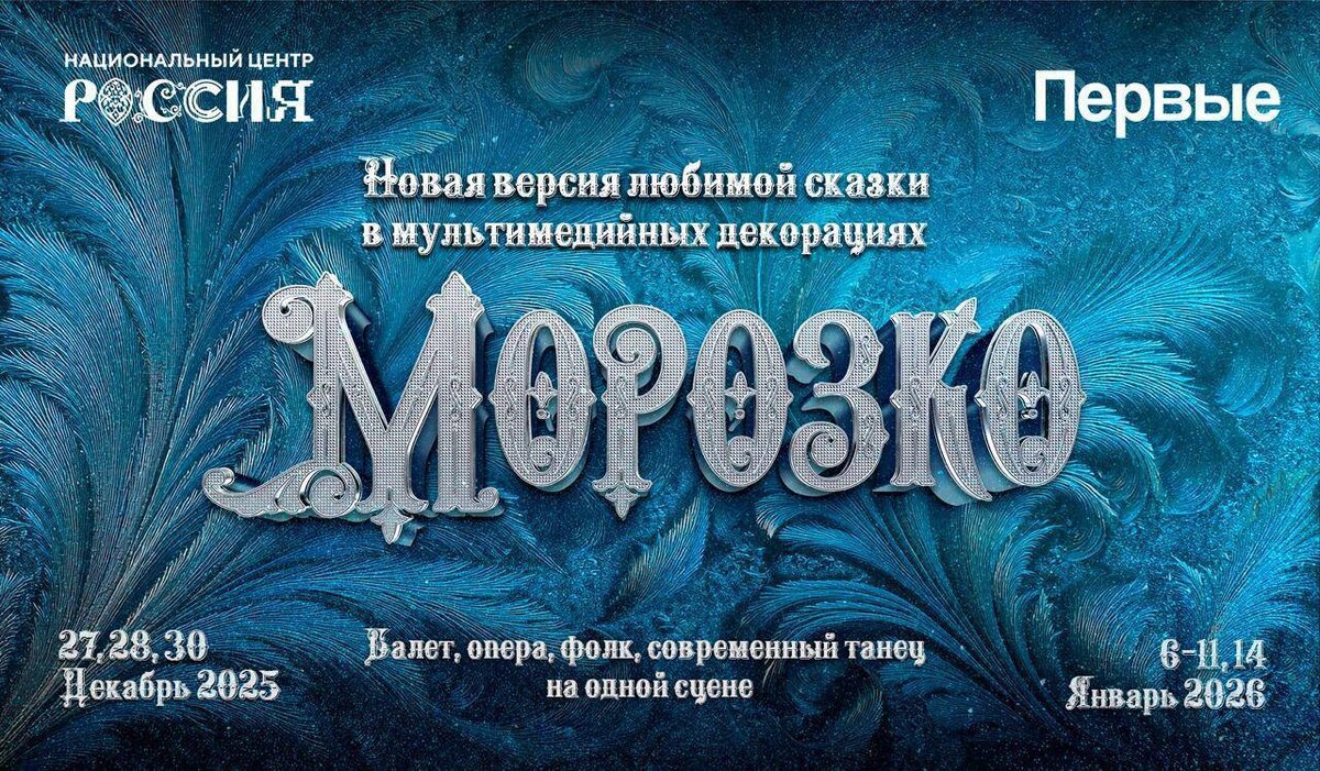 » С 27 декабря по 14 января | Национальный центр «Россия» Уникальный авторский спектакль «Морозко» — увлекательная новогодняя история, в которой переплетаются магия, традиции и семейные ценности. В постановке сочетаются традиции и современные формы. Она объединит оперу и балет, народный танец и современную хореографию. Вы увидите, как оживут картины, вдохновленные творчеством Виктора Васнецова и Ивана Билибина, а также советской и современной мультипликацией. А саму историю расскажет бабушка-сказочница вместе с умной колонкой Анфисой. «Морозко» — спектакль с современным взглядом на фольклор, где старые традиции обретут новые формы, приглашая зрителей стать частью незабываемой истории. На одной сцене соберутся ведущие артисты балета Большого театра и «Кремлевского балета», солисты Музыкального театра имени К.С. Станиславского и В.И. Немировича-Данченко, актеры Государственного академического театра им. Евгения Вахтангова и театра «У Никитских ворот», «Русский национальный балет «Кос
