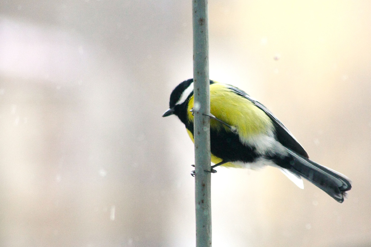 Там постоянно что-то происходит. Взаимоотношения между птичками очень напоминают взаимоотношения между людьми. Есть робкие, есть безрассудные, есть жадные, есть осмотрительные... Сегодня взяла фотоаппарат, отодвинула занавеску, и из глубин комнаты, стараясь оставаться незамеченной, сняла небольшую сценку между синичкой и воробьем. День был очень пасмурный, и кормушка простояла без птиц. И только ближе к полудню, наконец, появились двое. Самые голодные, видимо. Или самые смелые. Первой прилетела синичка. Прыгала по решетке. Осматривалась. Изучала обстановку... И только спустилась вниз, поближе к семечкам, как появился храбрый, и тоже одинокий воробей. Он был предельно осторожен... Заглянул даже в комнату, так что я замерла с фотоаппаратом в куках, боясь разоблачения... Синичка схватила семечку и улетела, а воробью все что-то не нравилось. Думаю - я)) Но вот он наконец залез в кормушку... А синичка вернулась, и ей хотелось еще семечек... Она ждала... Потом спустилась пониже, как бы намек