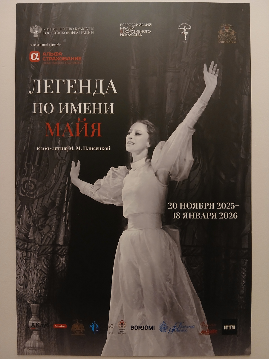Посетил выставку "Легенда по имени Майя", организованную к 100 летию со дня рождения великой балерины Майи Плисецкой в Музее декоративно-прикладного искусства. На выставке экспонируется порядка 300 экспонатов. Среди них – живопись, графика, скульптура, фарфор, стекло, медали, лаковая миниатюра и фотографии, посвящённые балерине из частной коллекции Юрия Мальцева. Некоторые экспонаты для широкой публики демонстрируются впервые.