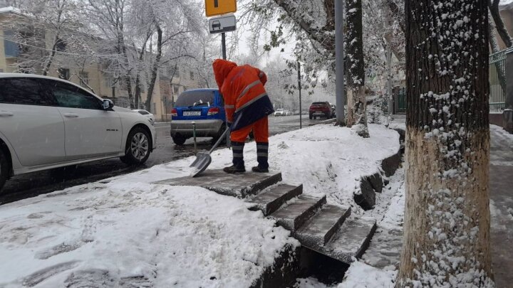 В пресс-службе хокимията города Ташкента сообщили, что в связи с обильными осадками в виде мокрого снега на территории столицы во всех районах в круглосуточном режиме продолжаются работы по уборке и обеспечению безопасного передвижения жителей.