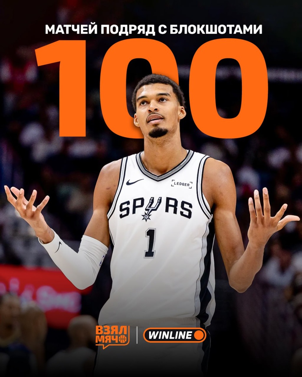 В победном матче против «Атланты» (126:98) мутант набрал 26 очков, 12 подборов, 3 передачи, сделав при этом 1 перехват и 2 блокшота всего за 21 минуту. Эта игра стала для Вембаньямы 100-й подряд, в которой он делал хотя бы один блокшот. До него этого достижения добивались лишь два игрока: 🔸 Патрик Юинг — 145 матчей 🔸 Дикембе Мутомбо — 116 матчей Серия француза началась 10 января 2024 года в матче против «Детройта». Установит новый рекорд уже в этом сезоне? 🤔 🏀 ПОДПИШИСЬ — ЗДЕСЬ ЖИВЁТ БАСКЕТБОЛ!