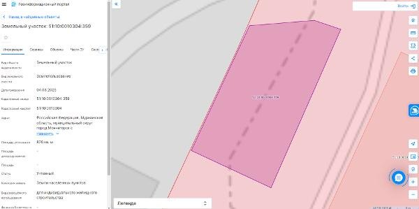 Название: Земельный участок с кадастровым номером 51:10:0010304:359 площадь 876 по адресу Российская Федерация, Мурманская область