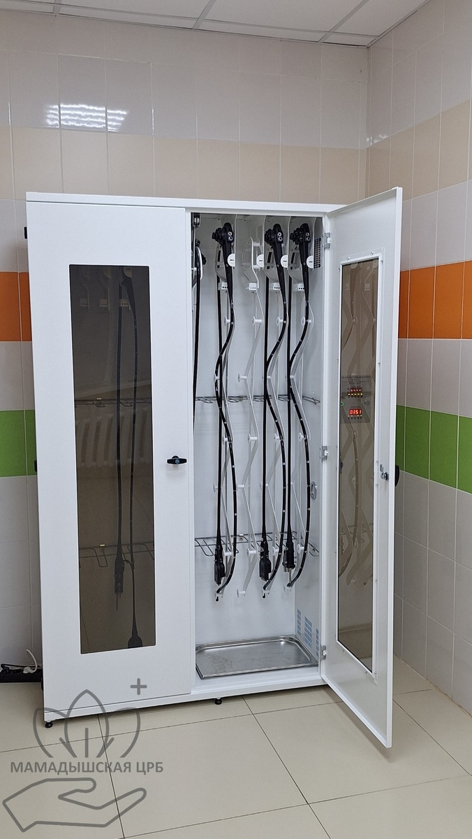 В эндоскопическом отделении ГАУЗ «Мамадышская центральная районная больница» введено в эксплуатацию современное оборудование, направленное на повышение качества и безопасности диагностических исследований. Обновление стало важным шагом в развитии медицинской инфраструктуры учреждения. Одним из ключевых приобретений стал специализированный шкаф для хранения стерильных эндоскопов. Он рассчитан на одновременное размещение до 10 эндоскопов различных моделей и вспомогательных инструментов, обеспечивает сохранение стерильности до семи суток и готовность оборудования к немедленному использованию. Внутри шкафа формируется стерильная среда за счёт встроенных бактерицидных ультрафиолетовых ламп, обеззараживающих воздух. Кроме того, устройство оснащено системой звуковой сигнализации, информирующей персонал о необходимости обслуживания или возможных нарушениях режима работы. Как сообщает Показать полностью... ✅ Подписаться l Мы в Max